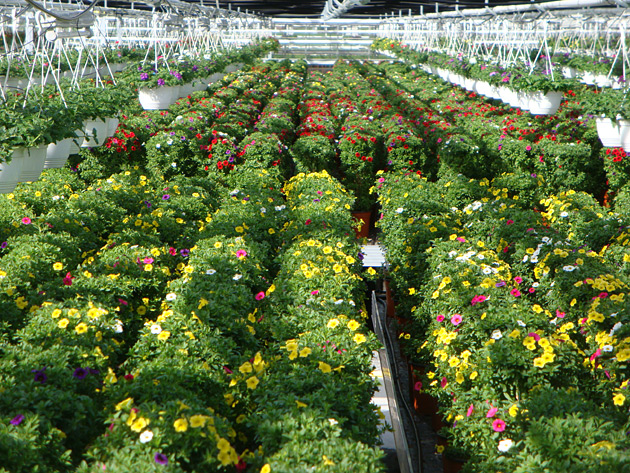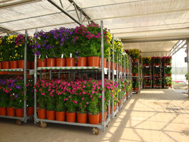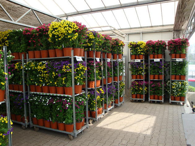 Bofinger-Säulen verbinden modernes Gartendesign mit professioneller Pflanzenproduktion und schaffen lebendige, farbenfrohe Akzente im Außenbereich.