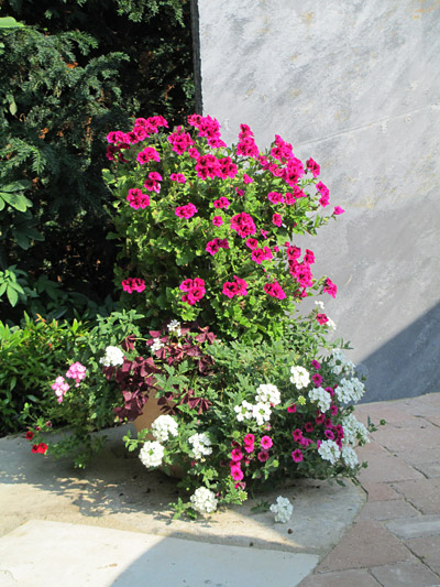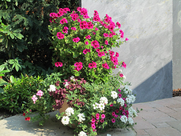 Pelargonium-Peltatum-Säulen verbinden mediterranen Charme mit moderner Gartengestaltung und sorgen den ganzen Sommer über für farbenprächtige Akzente.